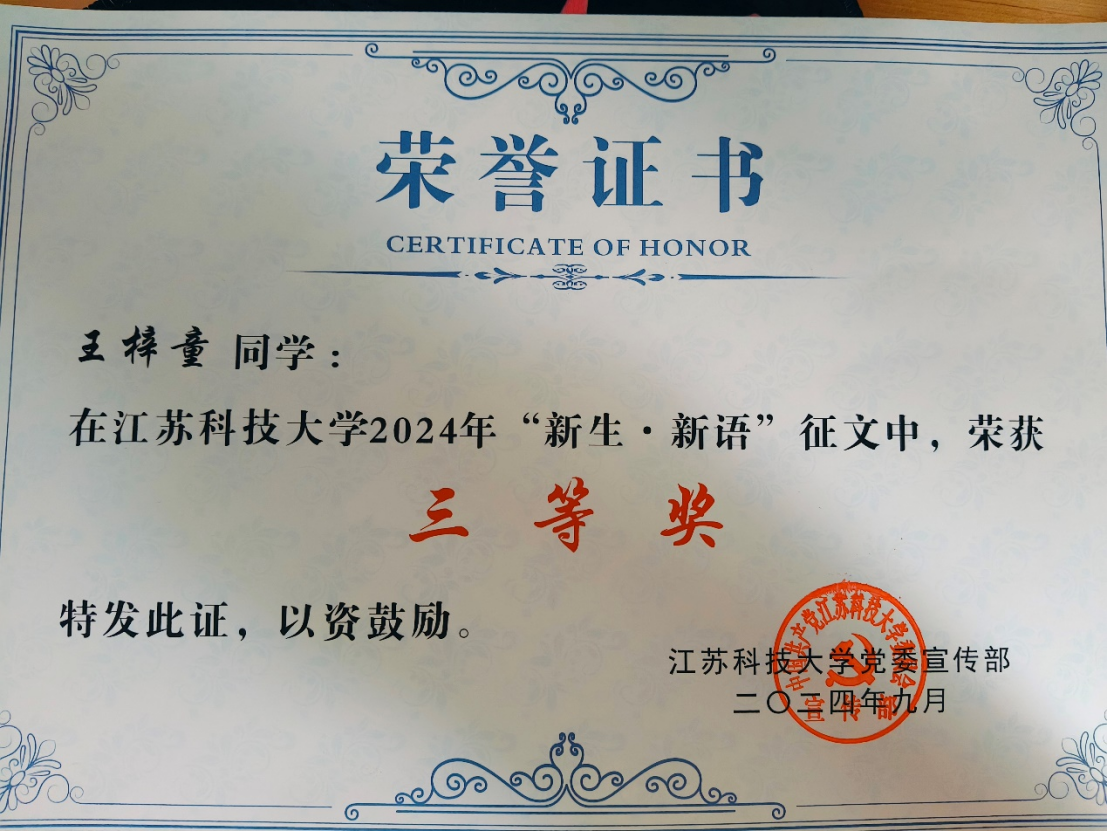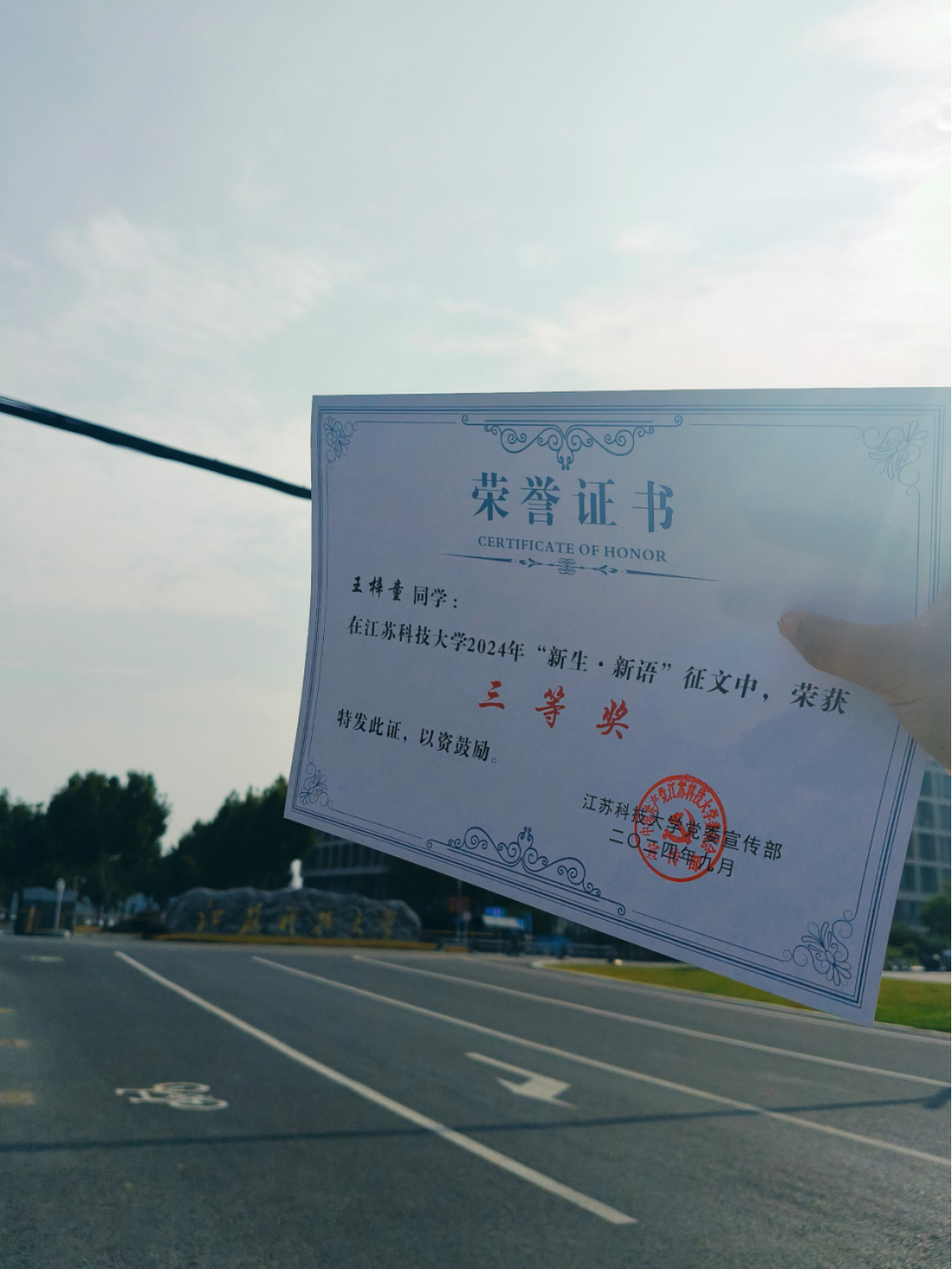 我与江科大的第一次产生联系是在新生新语征文比赛里,我以《缝纫机》叩开了三等奖的大门。起初,我在旧屋邂逅那台蒙尘的缝纫机,它似有魔力,牵引我探寻过往。我将心中涌动的情感付诸笔端,把对往昔岁月的怀念、对亲人的思念,都融入这篇文章。当得知获奖的那一刻,欣喜如烟花在心底绽放。这台缝纫机,不仅串联起家庭的回忆,更成为我创作路上的珍宝。这份荣誉是认可,更是前行的动力,激励我在文字海洋中继续扬帆远航