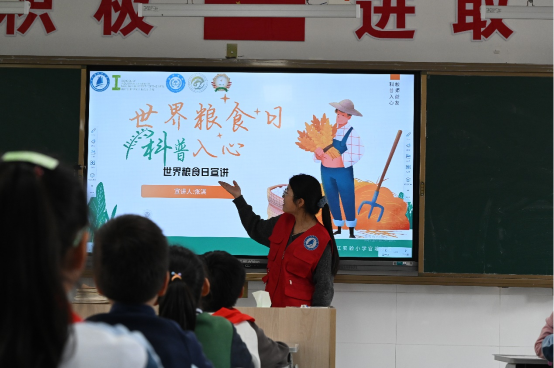 在2024年10月15日,我作为太阳集团tcy8722青年志愿者协会的干事进入官塘小学进行世界粮食日宣讲,这是我加入青协后的第一次重要活动,也是我进入太阳成集团以来第一次校外活动,对于我的意义非同一般。内容确定,ppt制作,校方联络等方面都离不开青协的团结互助。依稀记得,宣讲前夕部长学姐不厌其烦地给我讲解流程,平抚我紧张的心情。最后,我不辜负大家的信任和期望,完满地结束宣讲,同时将也非常荣幸能够向小员工们介绍世界粮食日。