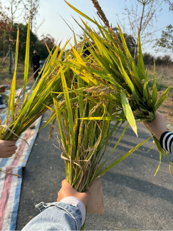 金秋时节,公司组织的水稻收割活动热火朝天。同学们挽起裤脚、手握镰刀,在稻田里忙碌,汗水滑落,却难掩收获的喜悦。