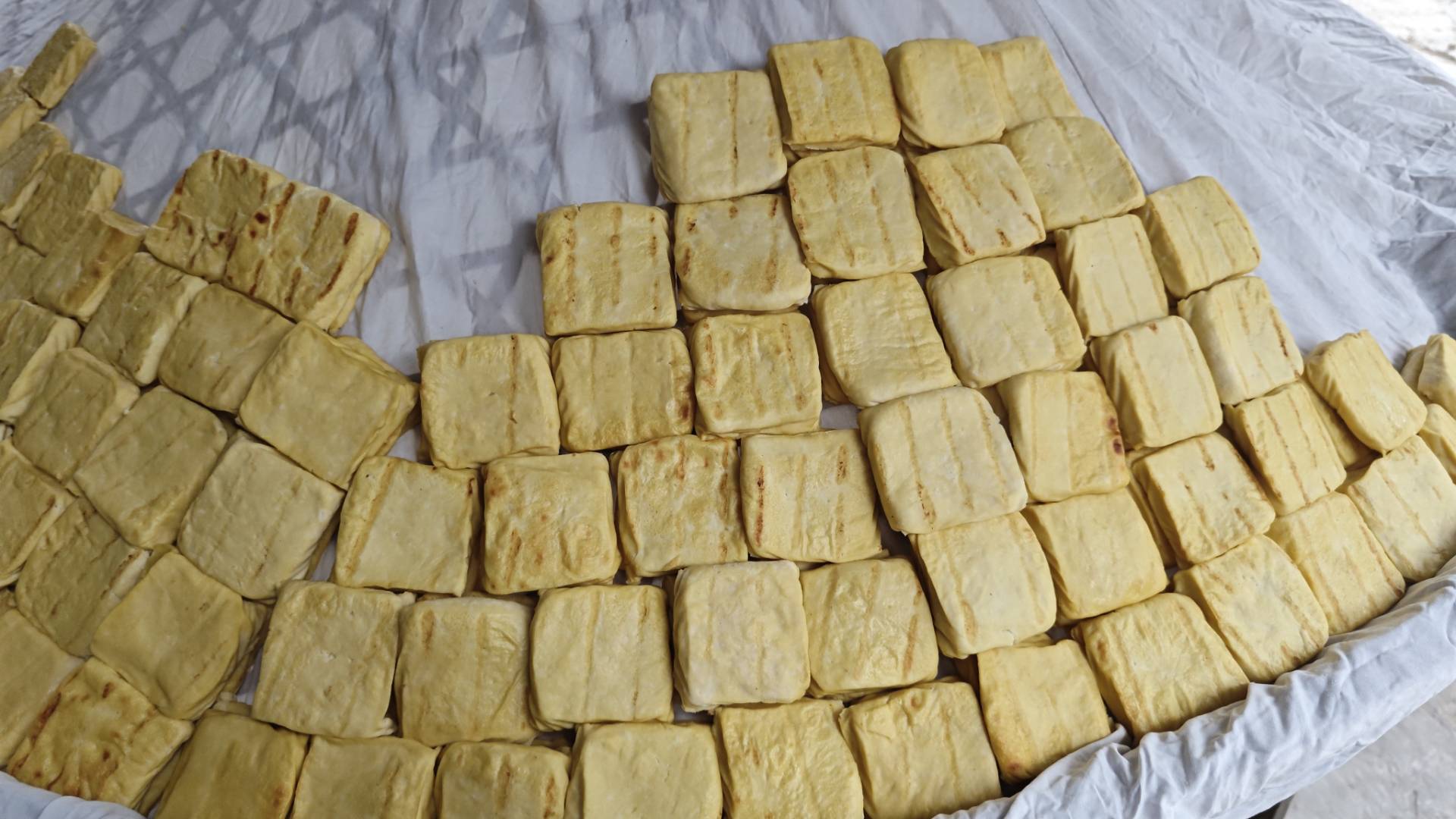 团队成员刘涛聚焦于湖北省利川市的“深山奇食”柏杨豆干,开展深入调研实践,从选豆、磨浆到定型、熏烤,全程记录这项百年技艺的数十道工序,同时运用专业知识为豆干发展建言献策。他在总结中道:“柏杨豆干不仅是‘固体豆浆’,更是‘活态文化基因’,每一块豆干都是数百年匠人匠心与智慧的凝结。我们有责任将传统文化传承下去,并且要以更加创新的方式让更多的人了解和喜爱它。”