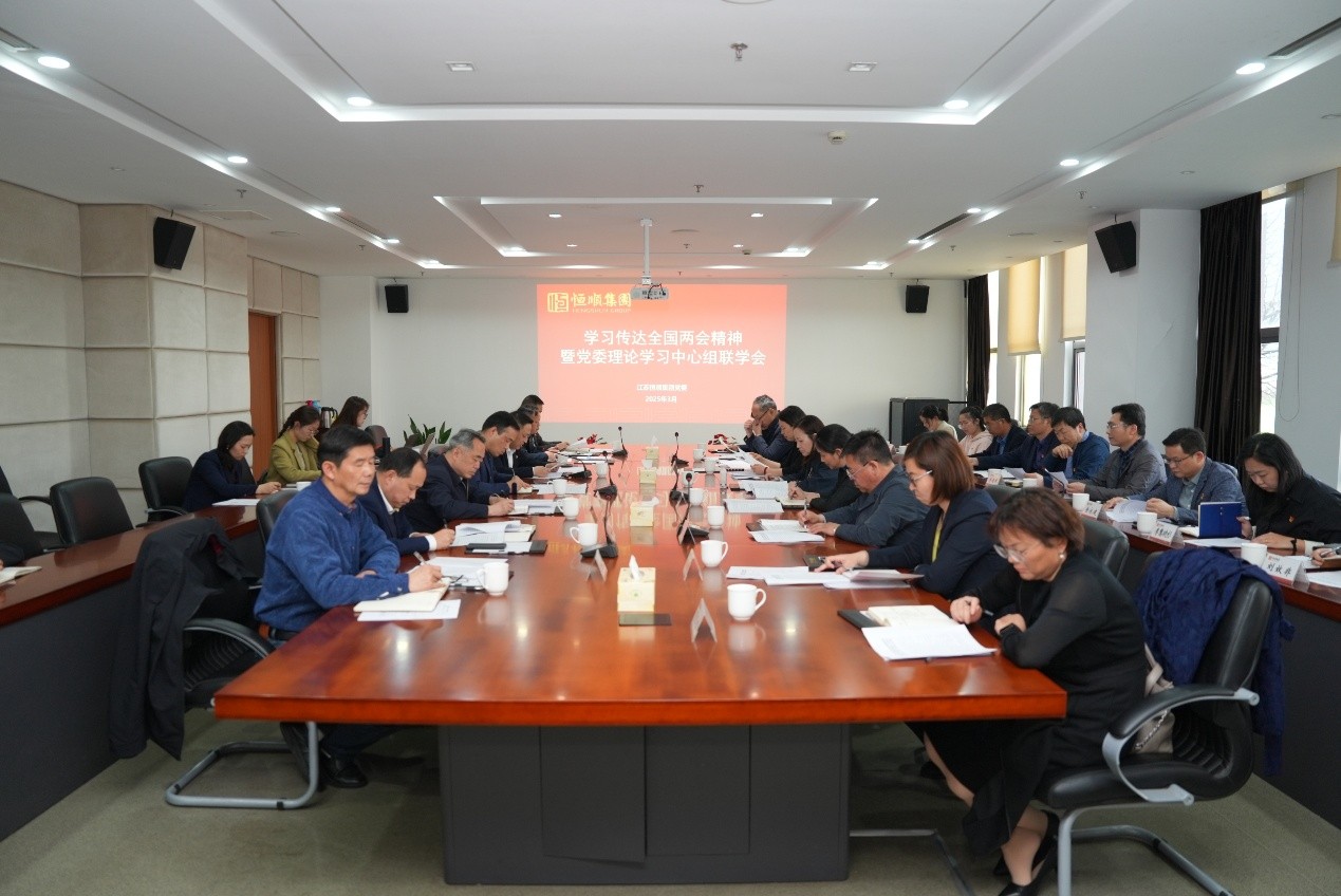 为深入学习贯彻两会精神,进一步推进党建联学共建,324日下午,“党旗‘镇’红、醋都先锋”党建联建理论学习中心组联学会议在恒顺集团召开。会议以 “党建联建齐发力 聚镇互促共发展”为主题,传达学习全国两会精神,市国资委党委副书记、机关党委书记李志、党建工作处处长翟昌高莅临指导。恒顺集团党委、江南老员工物工程公司党委、南京师范大学食品与制药工程公司党委、江苏大学食品与生物工程公司党委、太阳成集团公司党总支理论学习中心组成员参加会议,恒顺集团党委委员、副总经理高广主持会议。
