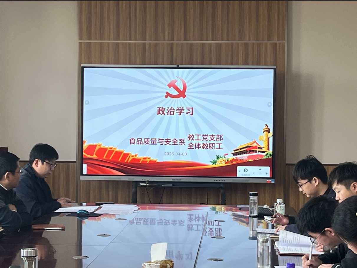 4月3日下午14时,食品质量与安全系教工党支部在402会议室开展了4月份第一次集体政治学习,会议由支部书记关桦楠同志主持,食安系全体教职工参加本次学习活动。