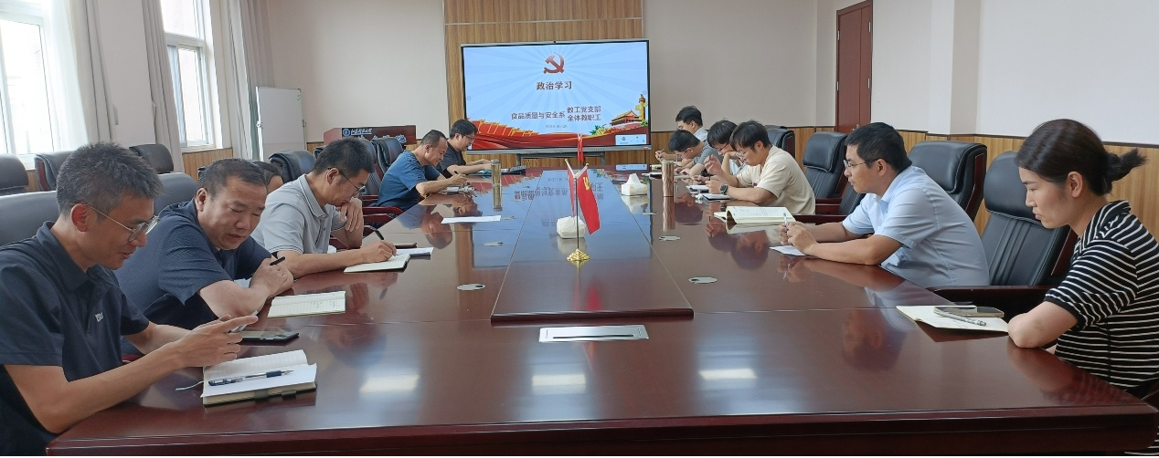 2025年6月26日下午14时,食品质量与安全系教工党支部在402会议室召开了6月份第二次集体政治学习,会议由支部书记关桦楠同志主持,食安系全体教职工参加了此次学习活动。