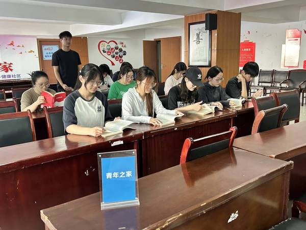 卫生清扫工作结束后,社区负责人余璐组织实践团成员前往社区青年之家开展了党的知识学习活动。在学习会上,余璐老师结合自身经历,生动地讲述了党的发展历程、党的宗旨以及党的各项惠民政策在社区的落实情况。成员们认真聆听,积极提问,深入了解党的光辉历史和伟大成就。同时,大家通过阅读相关书籍还共同学习了党的二十大精神,围绕如何将党的先进理念融入社区治理展开了热烈讨论。实践团成员刘明毫表示:“通过这次学习,我深刻认识到党的领导对于社区发展的重要性,也更加明确了自己作为新时代青年的责任和使命。”