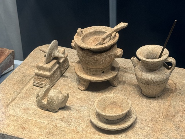 图为扬州大运河博物馆展出的舂具、陶壶等