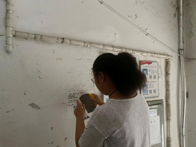 沈玥同学带着铲刀、喷水壶和垃圾袋,专注清理社区楼道、墙面及电线杆上的“牛皮癣”。面对顽固广告,她先喷水浸润,再用铲刀小心铲除,最后用抹布擦净残留。从一楼到顶楼,从街头到巷尾,她不放过任何死角,用细致动作让斑驳的公共区域重归整洁,为社区环境焕新添力。