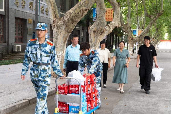 时值九月,骄阳似火,太阳集团tcy87222025级新生的军训工作正在如火如荼地进行。为鼓舞军训士气,传递公司温暖,9月27日上午,太阳集团tcy8722经理鲁玉杰、公司党总支书记梁忠臣、班主任代表贺培欢老师以及2025级新生辅导员李阿春一行亲临梦溪校区训练场,亲切慰问刻苦训练的全体参训新生与辛勤付出的承训教官,并为他们送上了精心准备的慰问品。