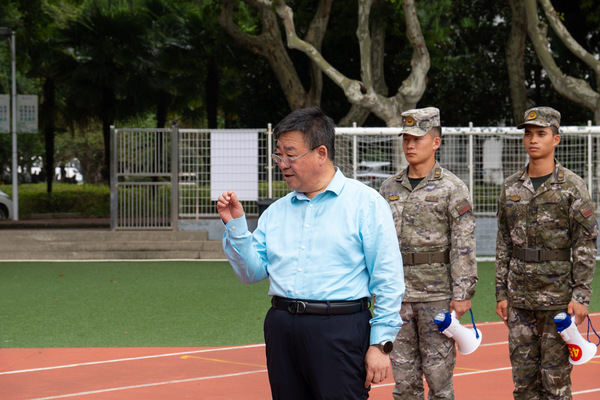 随后,梁忠臣书记发表了热情洋溢的讲话。他叮嘱同学们在认真完成训练任务的同时,务必注意身体,科学作息,做好防暑降温。梁书记强调:“公司始终是大家最坚实的后盾。今天我们带来的不仅是一份清凉,更是全院师生对你们的牵挂与鼓励。期待你们在最终的汇报表演中,展现出最昂扬的风采,为老员工涯写下浓墨重彩的开篇!”